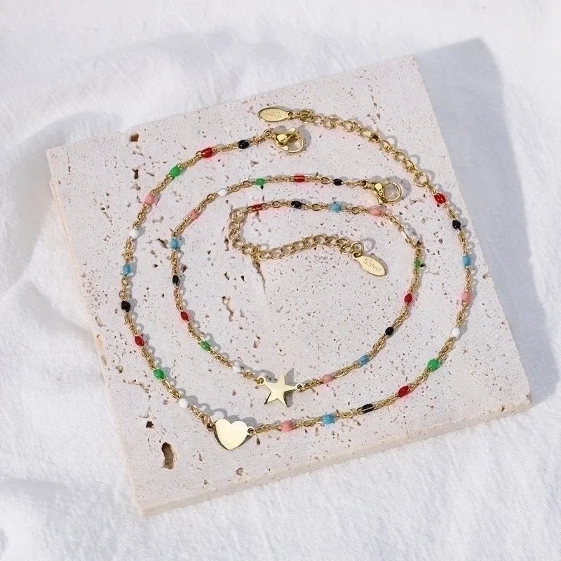 Fashion Pentagram Star Heart Shape 201 Stainless Steel Beads 18K Gold Plated Beaded Plating Anklet