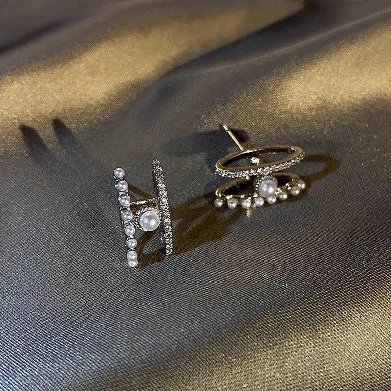 Fashion Round Copper Inlay Pearl Ear Studs 1 Pair