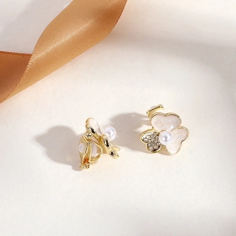 Fashion Round Heart Shape Flower Brass Inlay Artificial Pearls Rhinestones Opal Ear Clips 1 Pair