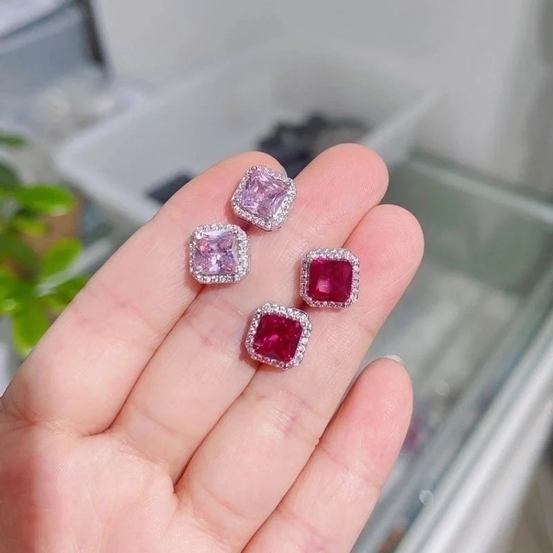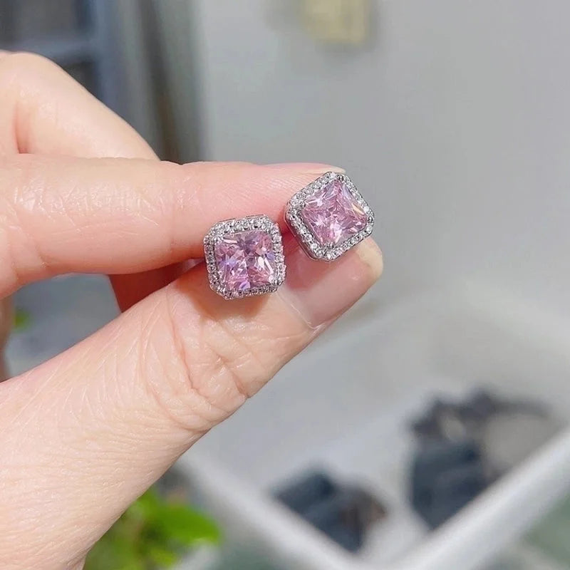 1 Pair Fashion Square Inlay Copper Zircon White Gold Plated Ear Studs