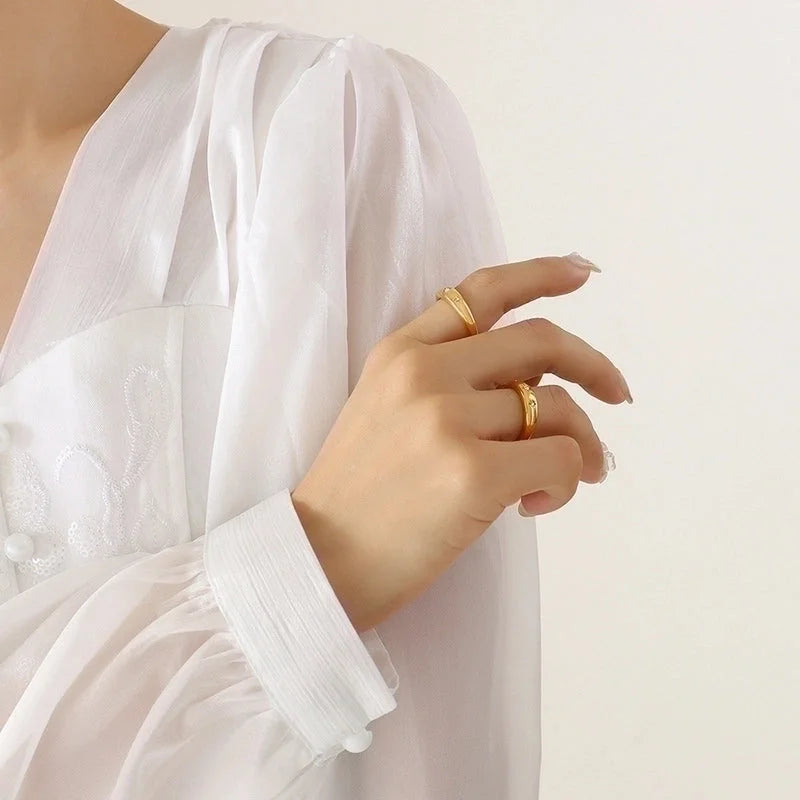 Fashion Star 304 Stainless Steel Zircon 18K Gold Plated Plating Inlay Rings