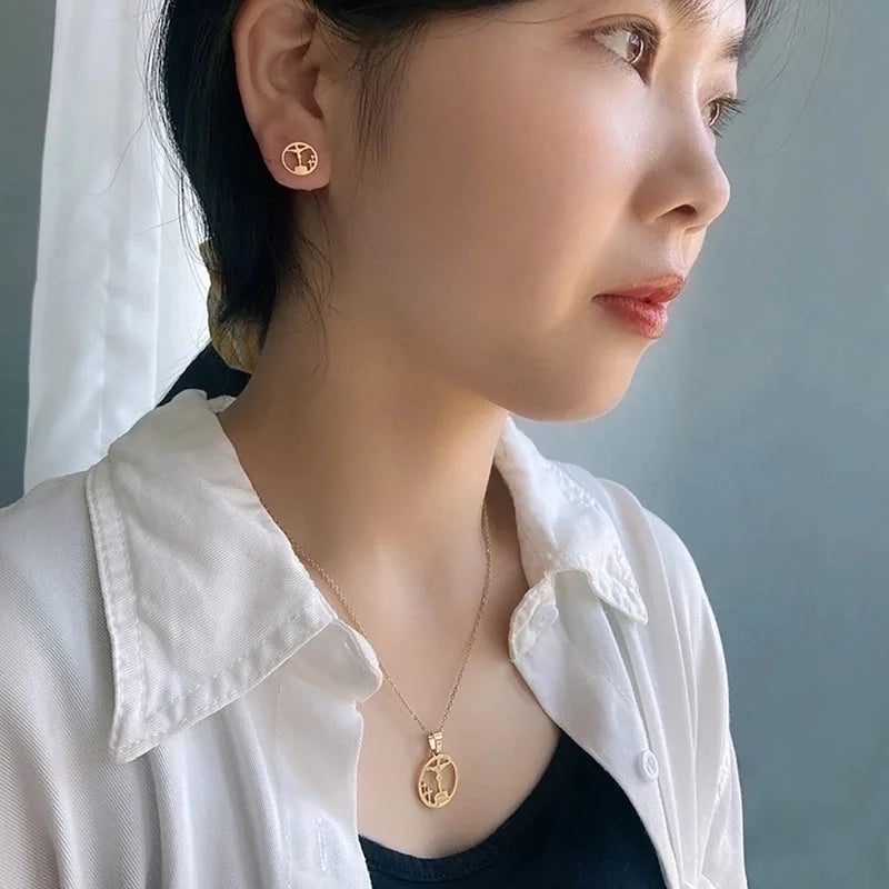 Fashion Star Tree Heart Shape Titanium Steel Hollow Out Women\'s Earrings Necklace 1 Set