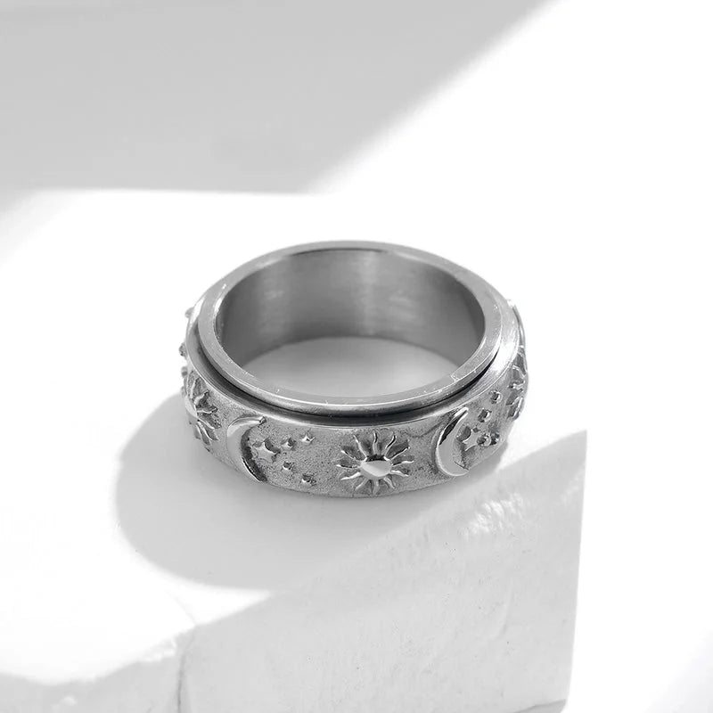 Fashion Sun Moon And Star Titanium Steel Rotatable Bohemian Ring
