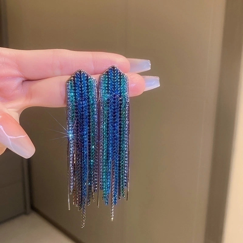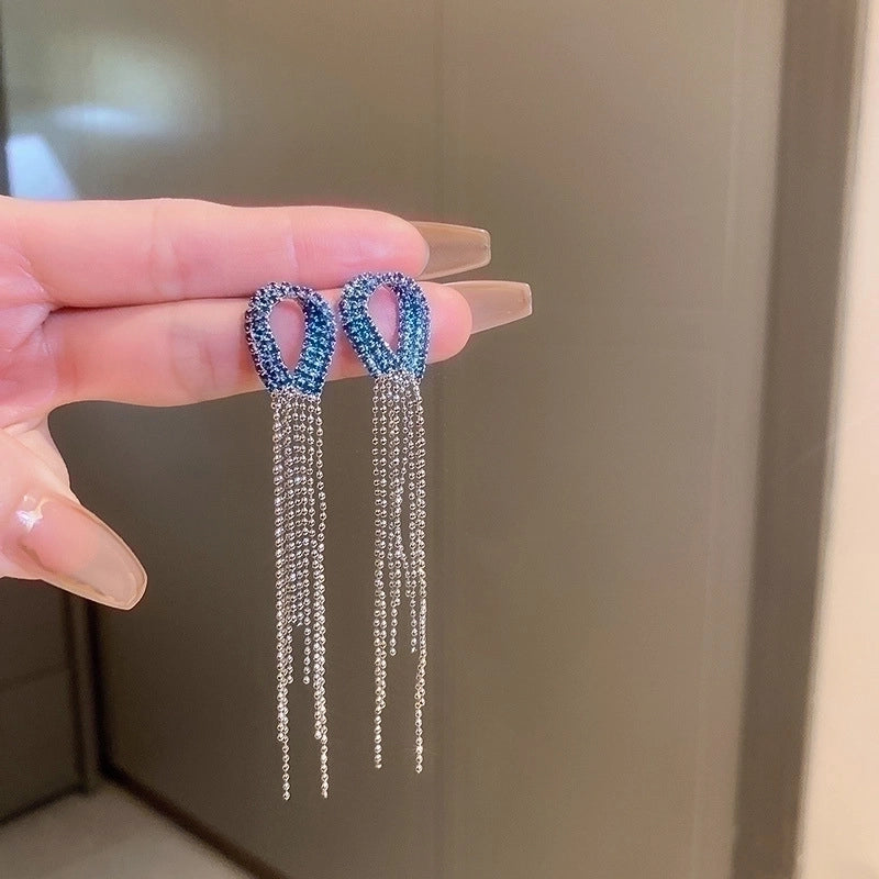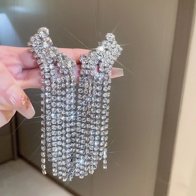 Fashion Tassel Copper Inlay Rhinestones Drop Earrings 1 Pair