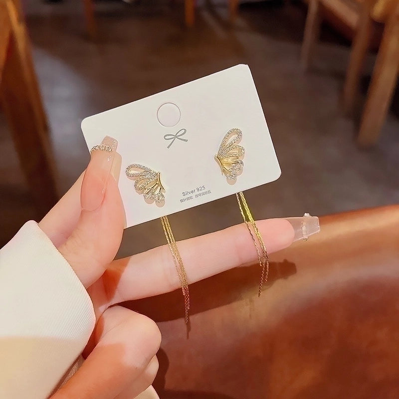 Fashion Tassel Heart Shape Bow Knot Imitation Pearl Copper Inlay Rhinestones Drop Earrings 1 Pair