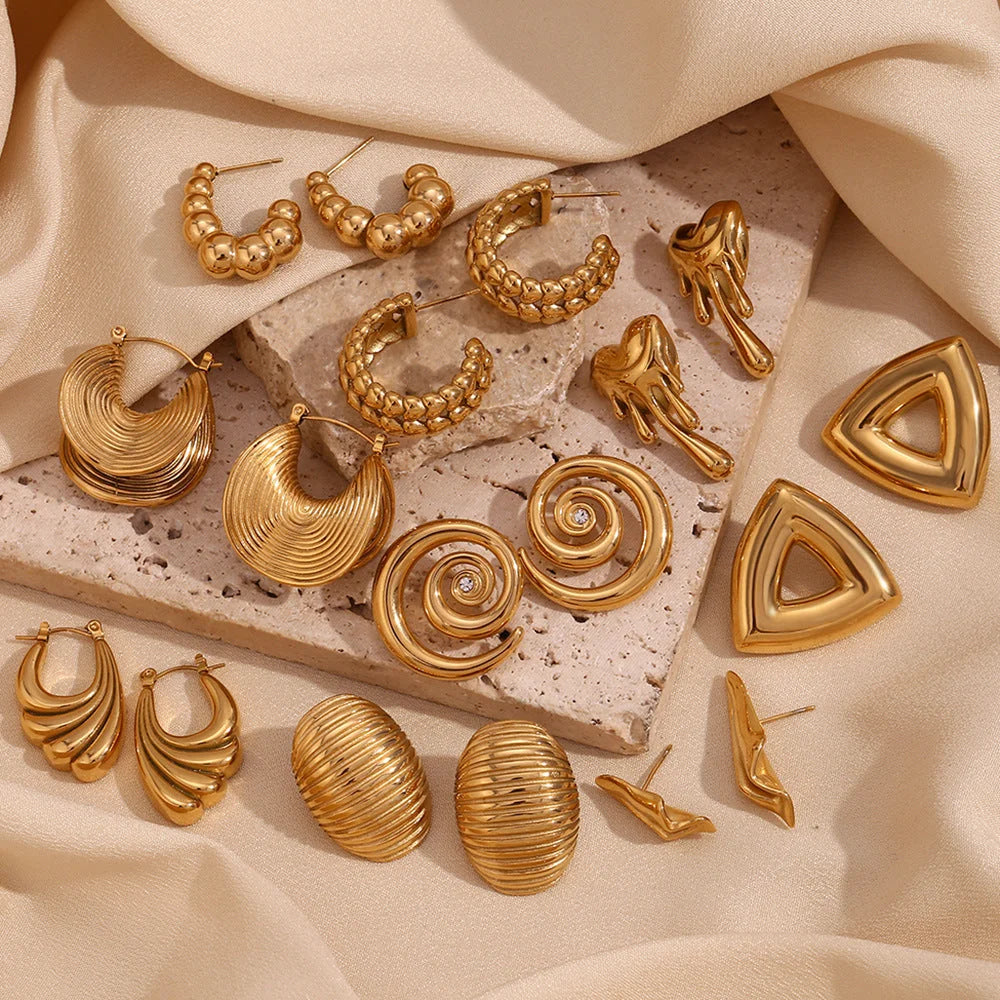 Fashion Triangle Circle Geometric Heart Stainless Steel 18K Gold Plated Earrings
