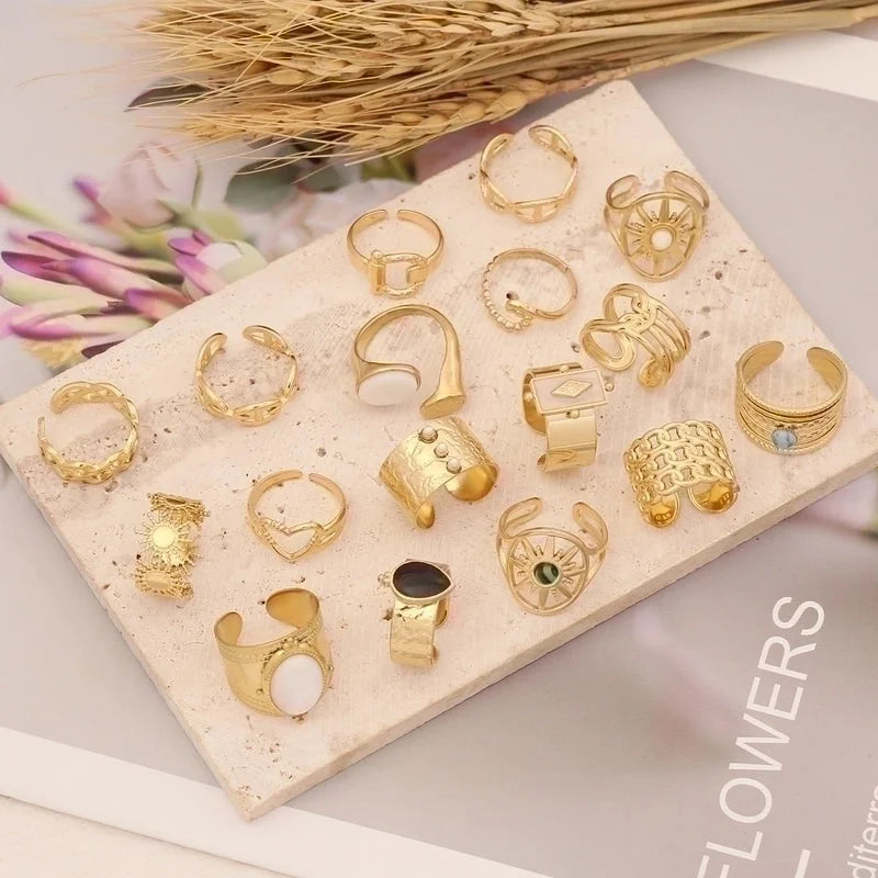 Fashion Waves Stainless Steel Inlay Open Ring
