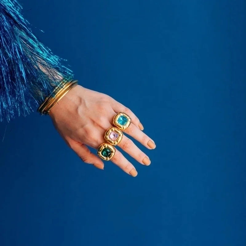 Formal Classic Style Artistic Geometric 304 Stainless Steel Glass Inlay Rings