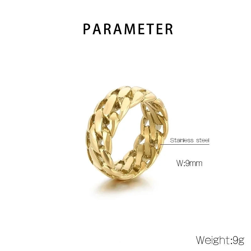 Hip-Hop Round 304 Stainless Steel 18K Gold Plated Rings