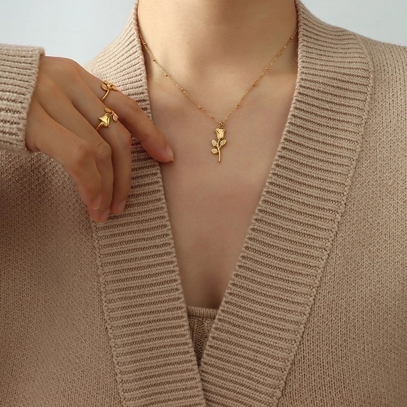 Hip Hop Style Rose Flower Pendant Necklace Ring