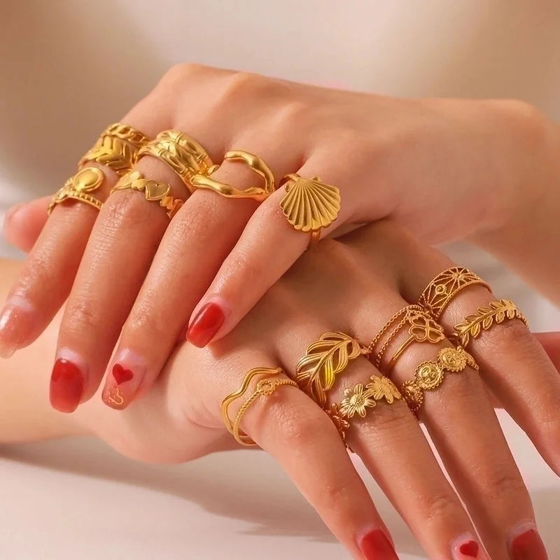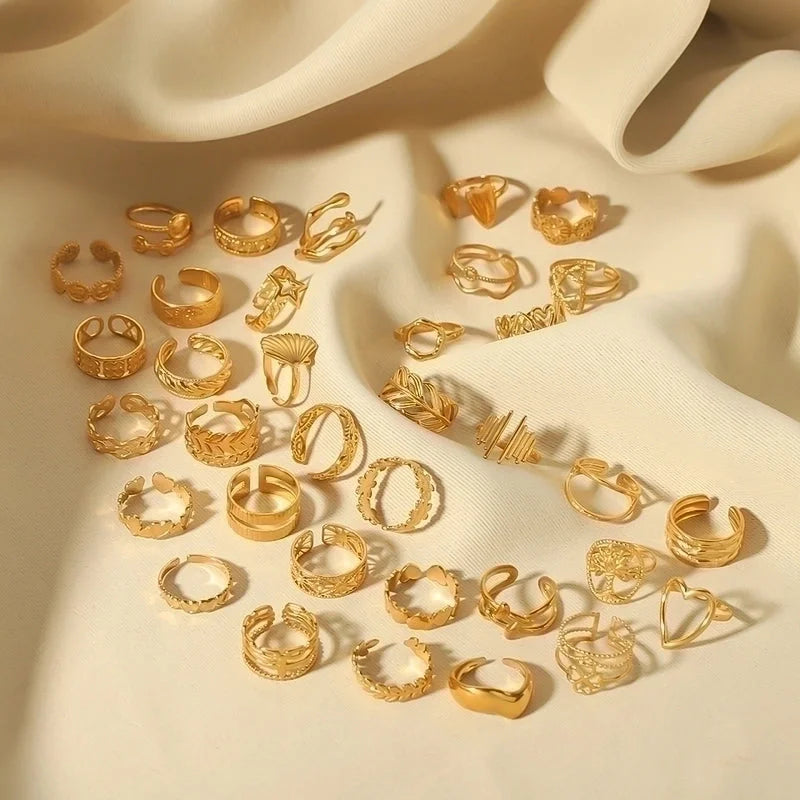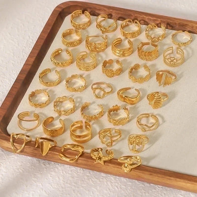 Stainless Steel 18K Gold Plated IG Style Basic Minimalist Plating Four Leaf Clover Heart Shape Flower Open Rings