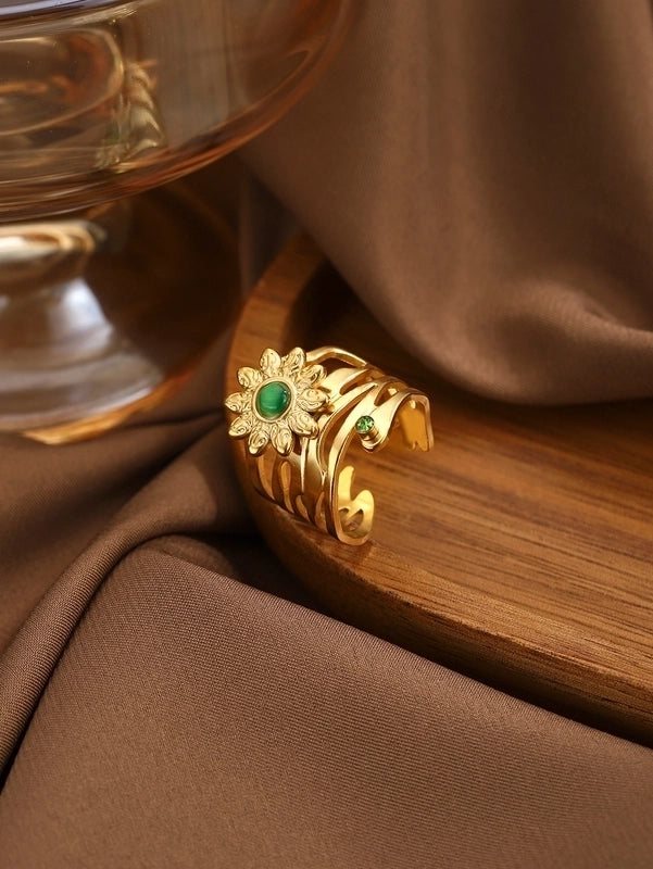 IG Style Elegant Classical Flower Chrysanthemum 304 Stainless Steel Imitation Pearl Opal Open Rings