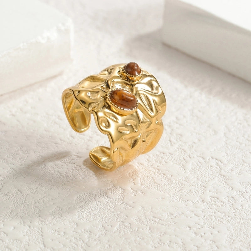 IG Style Elegant Irregular 304 Stainless Steel 18K Gold Plated Irregular Open Rings