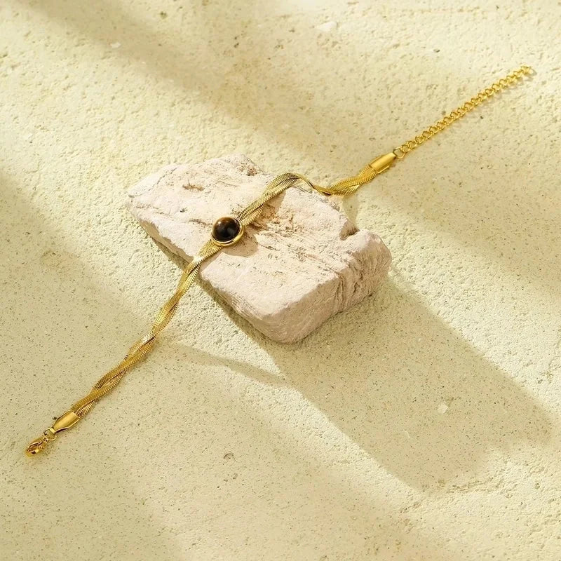 IG Style Geometric 304 Stainless Steel 18K Gold Plated Natural Stone Snake Chain Bracelets In Bulk