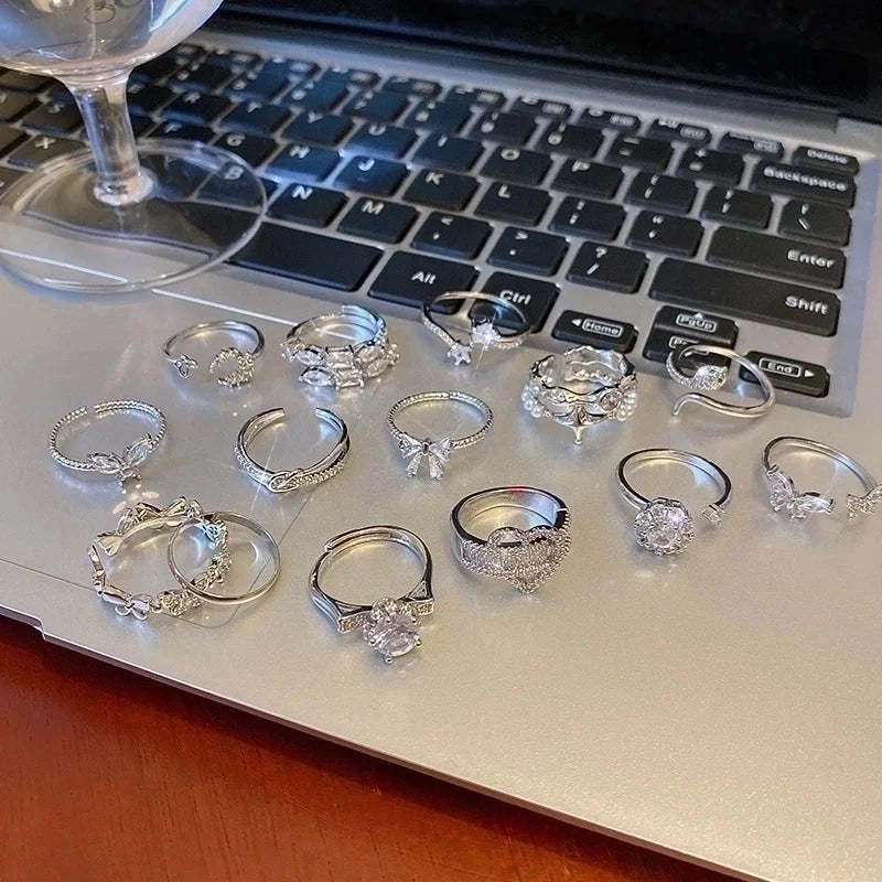 IG Style Geometric Copper Plating Inlay Zircon Rings