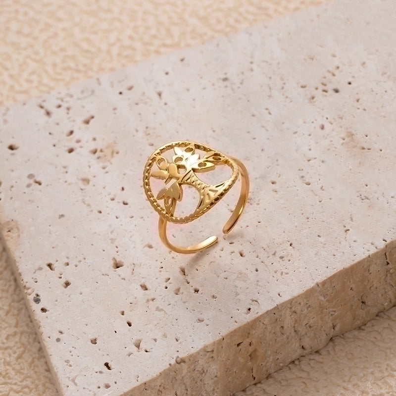 IG Style Retro Geometric 304 Stainless Steel Plating Hollow Out Open Ring
