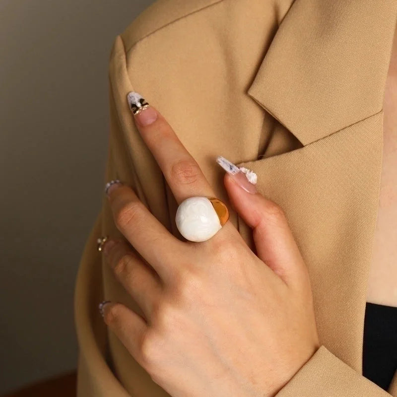 Ig Style Round Titanium Steel Enamel Plating 18k Gold Plated Rings