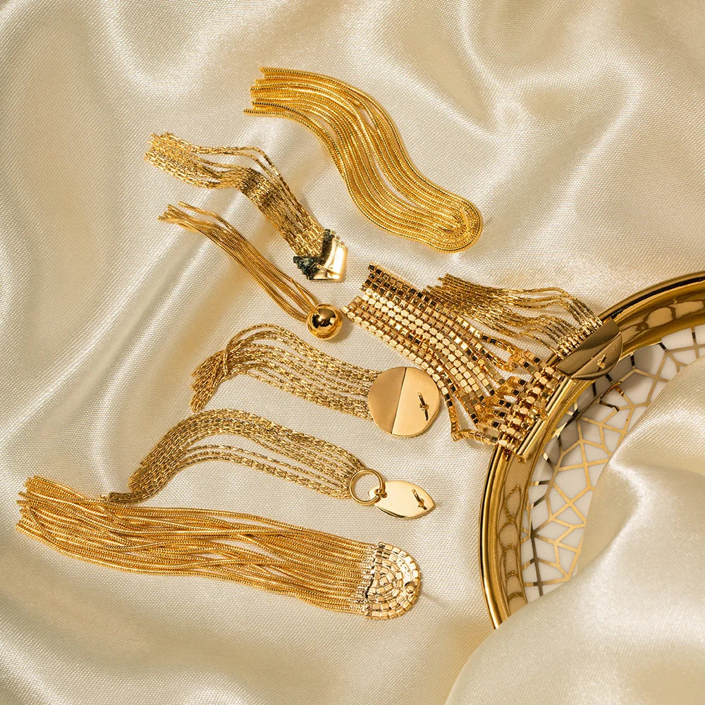 IG Style Tassel Geometric Stainless Steel 18K Gold Plated Earrings