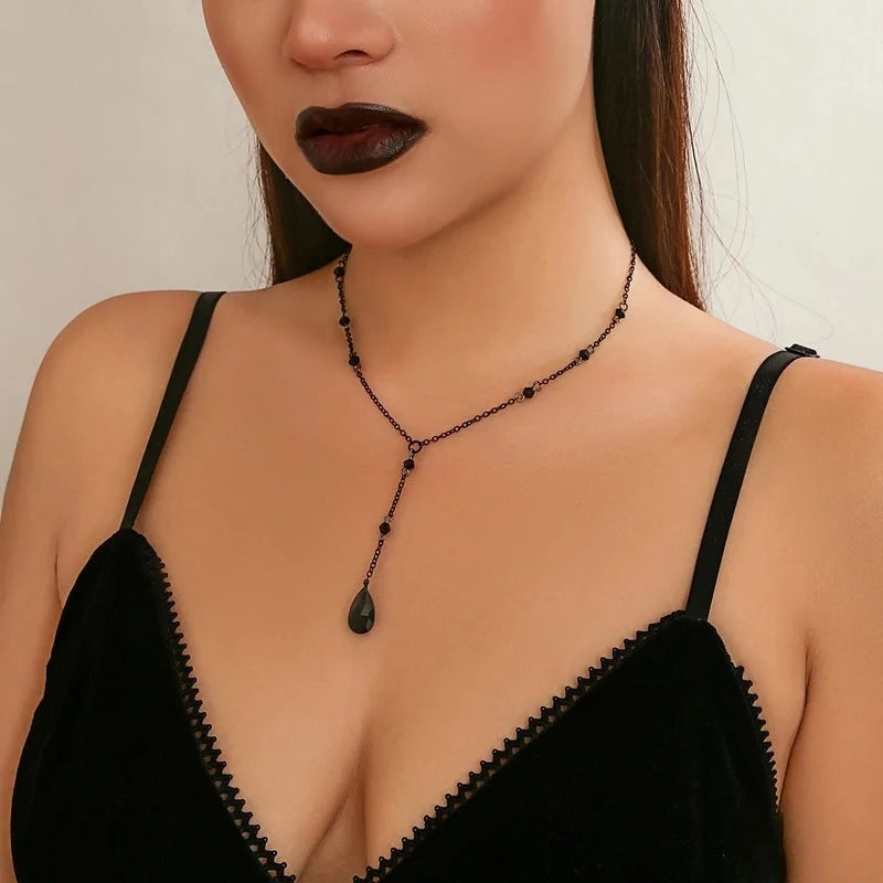 Imitation Crystal Metal Copper Tassel Plating Chain Water Droplets Necklace