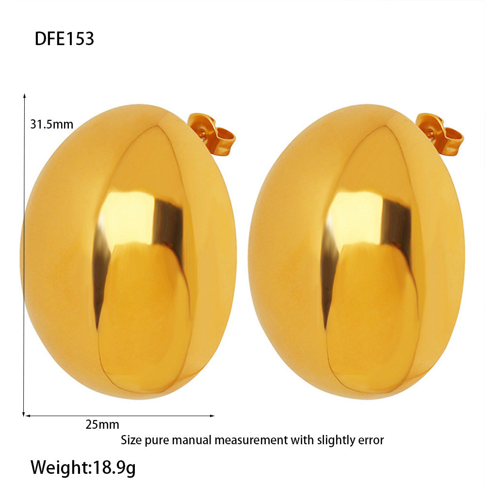 INS exaggerated thread geometric earrings, 16K genuine gold electroplated 316L smooth earrings, oval earrings, female