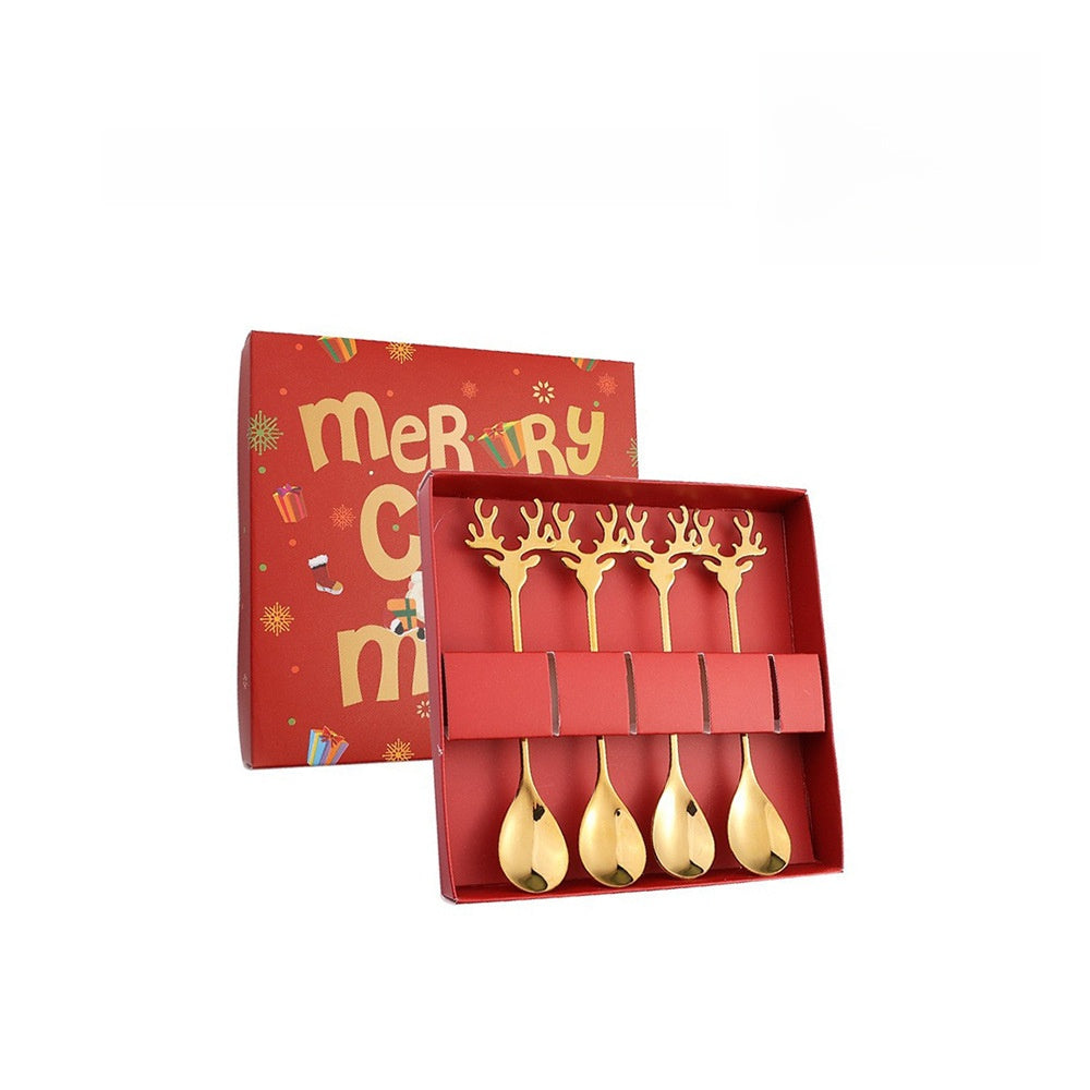 J304 Stainless Steel Elk Spoon And Fork Set Christmas Spoon And Fork Set Coffee Stirring Spoon Dessert Christmas Spoon