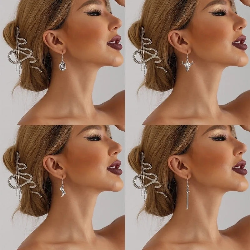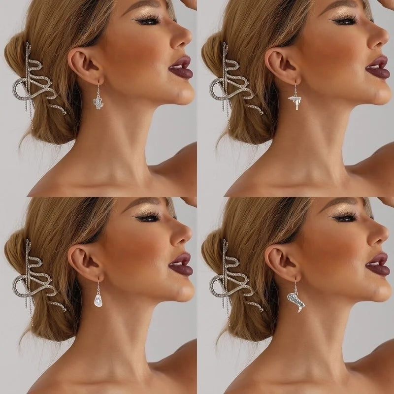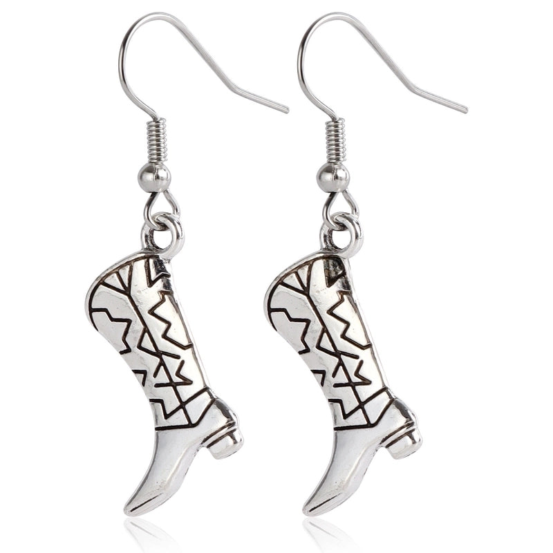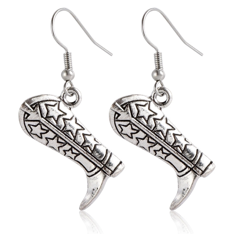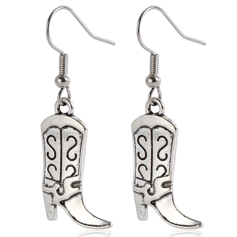 Jewelry Punk Western Denim Style Boots Cow Head Tassel Earrings Vintage Cactus Earrings For Women