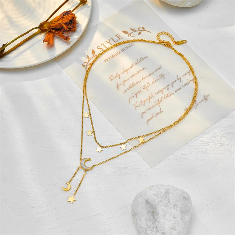 Korean Chain Pentagram Tassel Geometric Titanium Steel Electroplating Necklaces