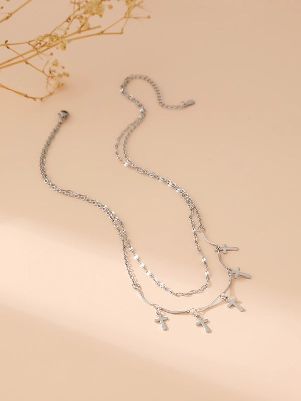 Lady Classic Style IG Style Cross Star Leaves 304 Stainless Steel 18K Gold Plated Double Layer Necklaces