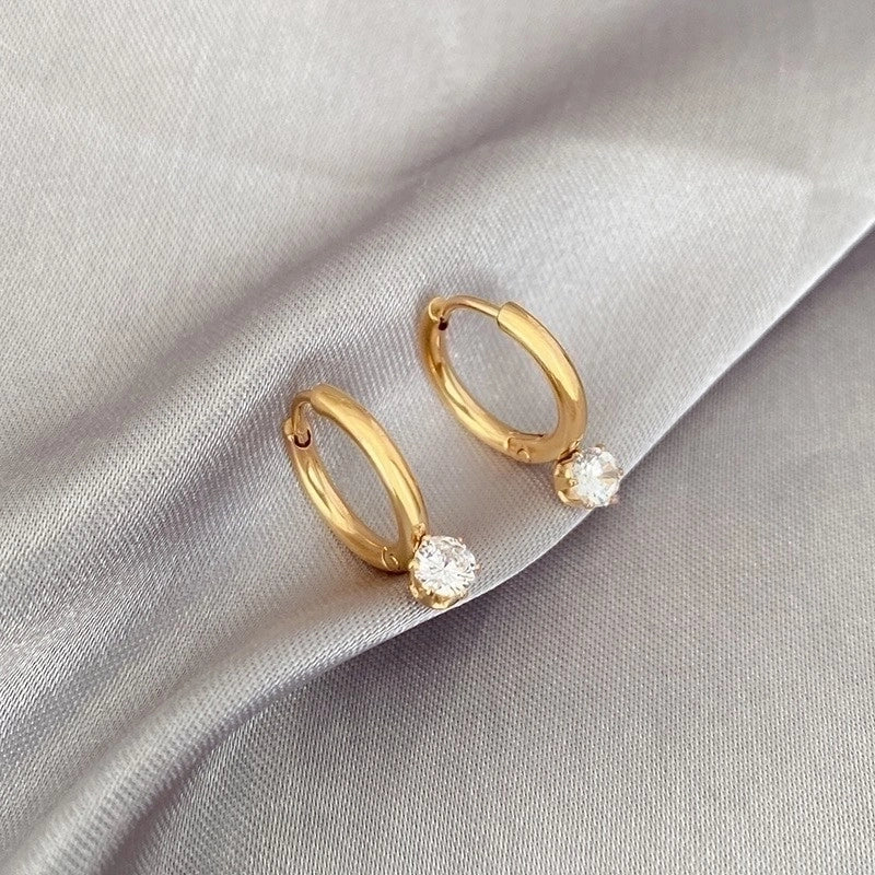 Lady Geometric Titanium Steel Gold Plated Zircon Earrings 1 Pair
