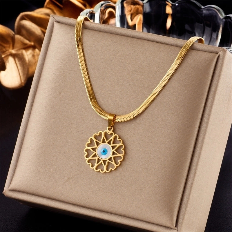 Lady Heart Shape Eye Titanium Steel Plating Necklace