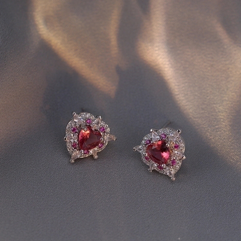 Luxurious Heart Shape Titanium Steel Inlay Zircon Women's Earrings Necklace Jewelry Set