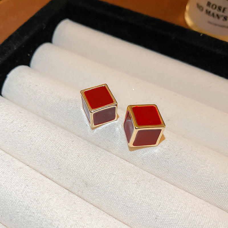 Luxurious Stripe Quadrilateral Round Leaf Bowknot Geometric Heart Droplet Copper Oil Dripping Earrings