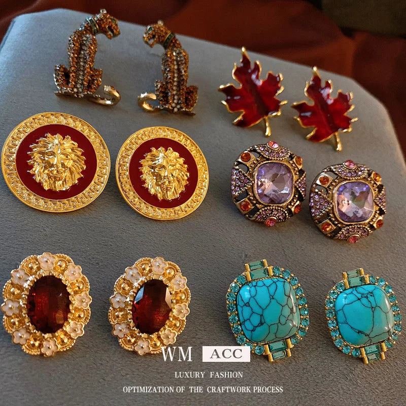 Medieval Flower Animal Leaf Geometric Droplet Flower Chinese Zodiac Artificial Pearl Oil Dripping Earrings
