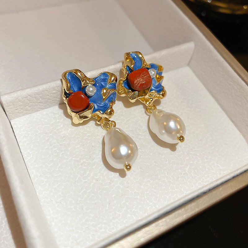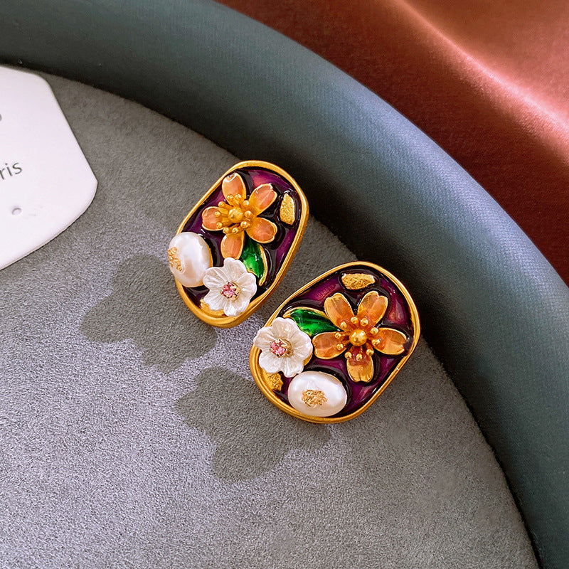 Medieval Flower Geometric Flower Copper Oil Dripping Earrings