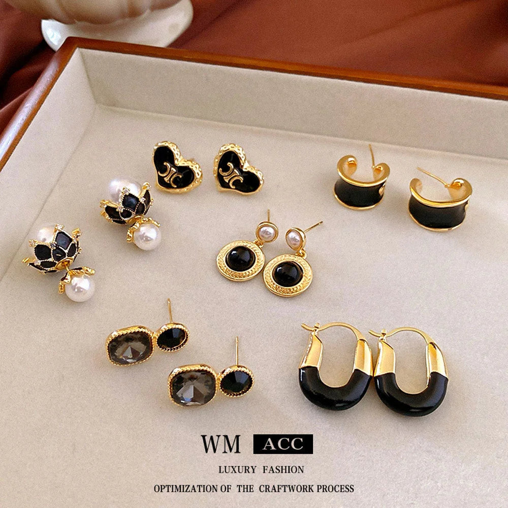 Medieval Pearl Geometric Copper Electroplating Stud Earrings