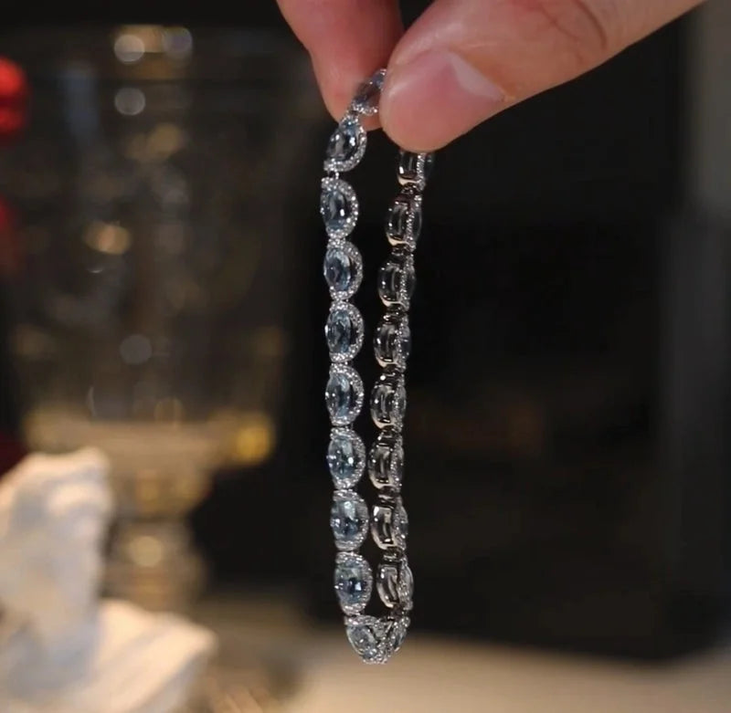 Micro-inlaid Diamond Sea Blue Row Ring Galaxy Lace Aquamarine Bracelet Color Treasure Ring