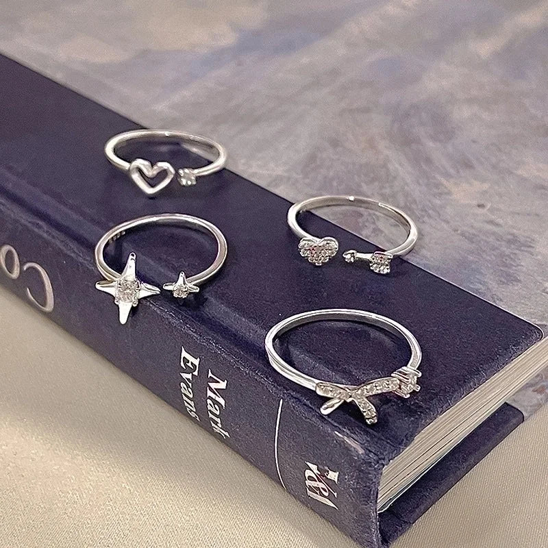 Minimalist Bow Knot Copper Inlay Zircon Rings