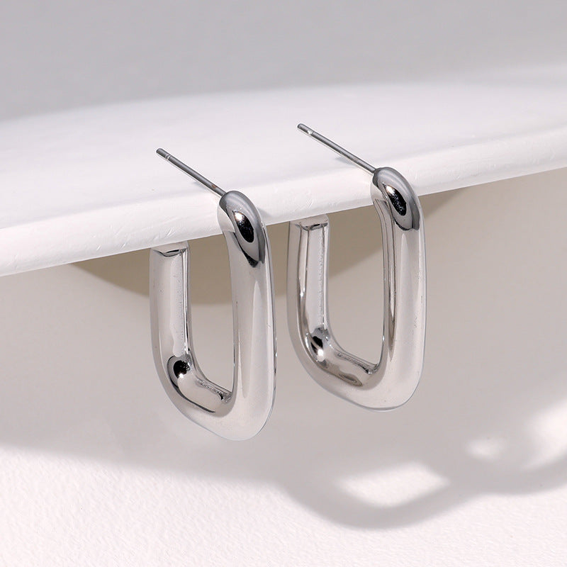 Minimalist Circle U-Shape Stainless Steel Electroplating Stud Earrings