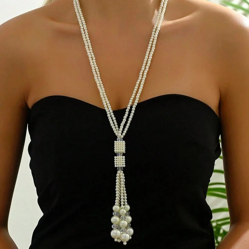 Minimalist Color Block Imitation Pearl Beaded Women's Sweater Chain