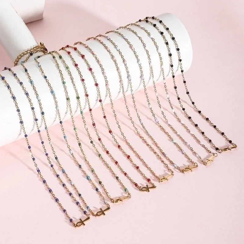 Minimalist Cross Stainless Steel Titanium Steel Enamel Necklace