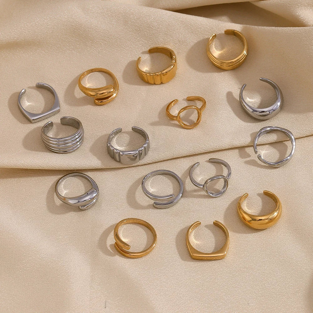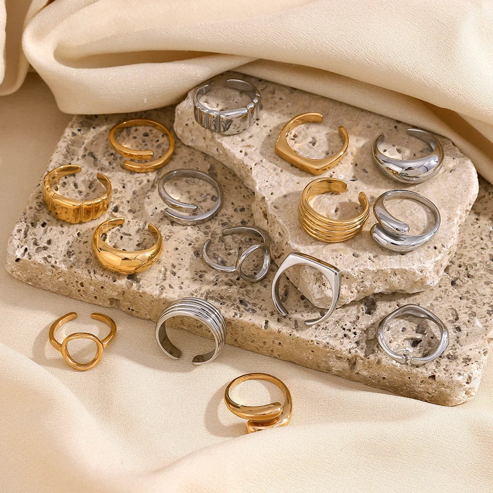 Minimalist Fashion Circle Stripe Geometric Stainless Steel Electroplating Rings