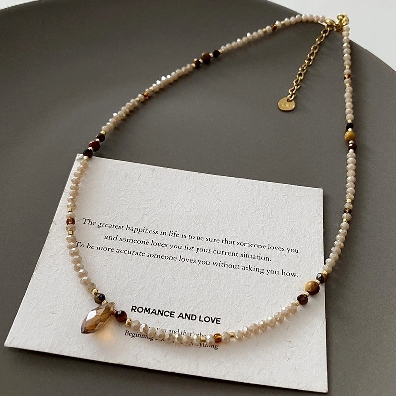 Minimalist Geometric Natural Stone Tiger Eye Pendant Necklace In Bulk