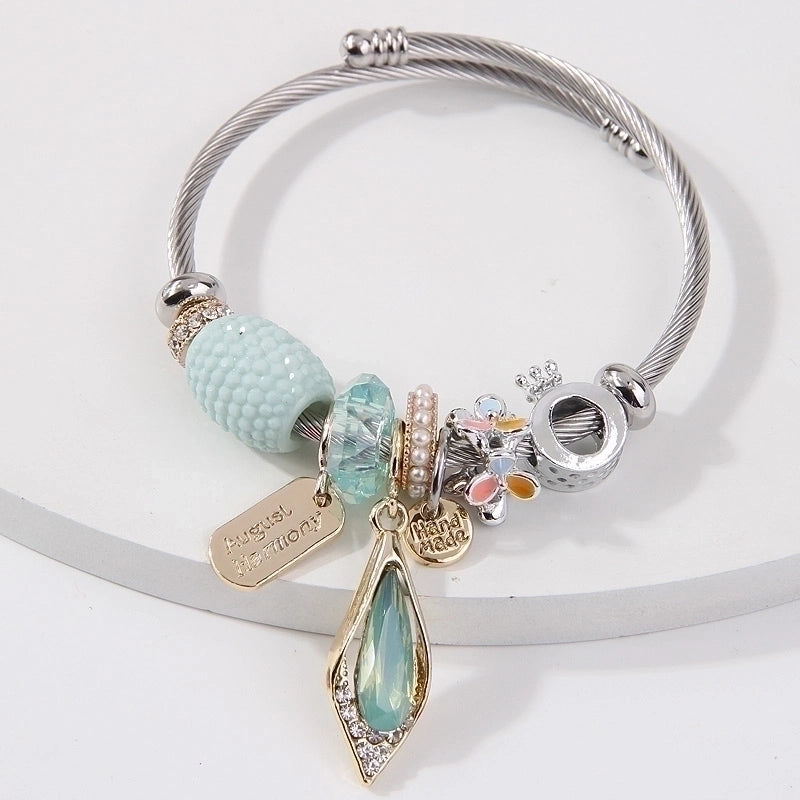 Minimalist Geometric Stainless Steel Alloy Inlay Artificial Pearls Rhinestones Bangle