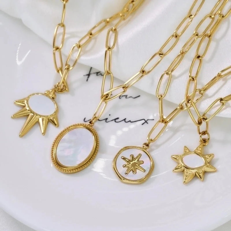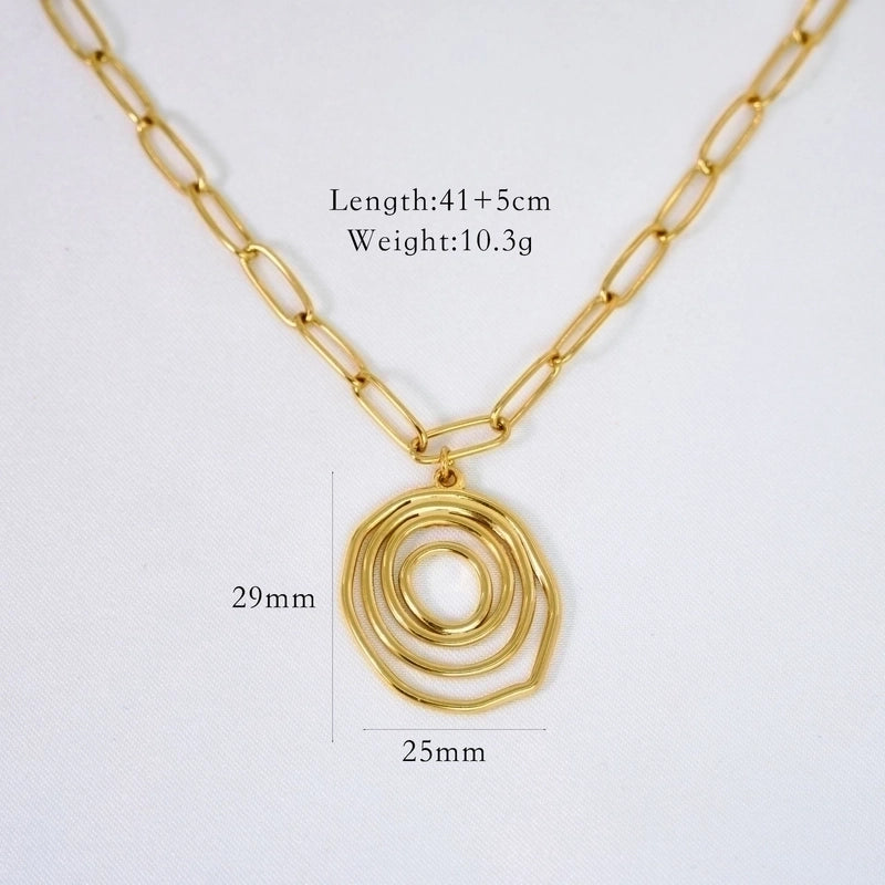 2 Pieces Minimalist Geometric Titanium Steel 14K Gold Plated Pendant Necklace