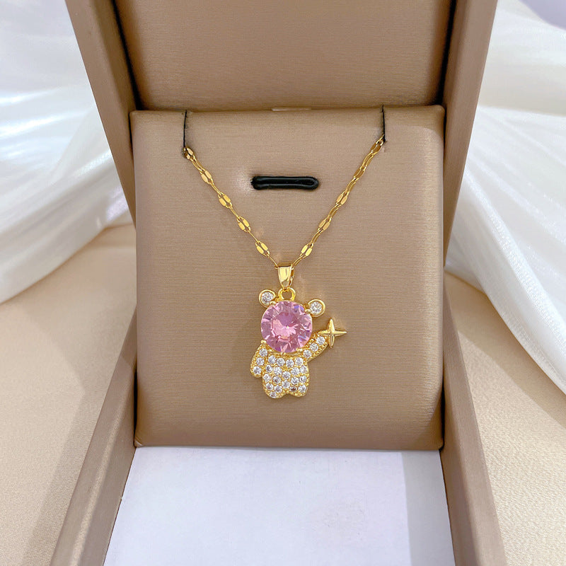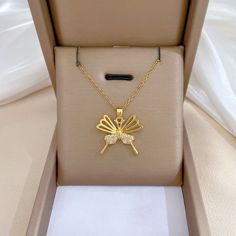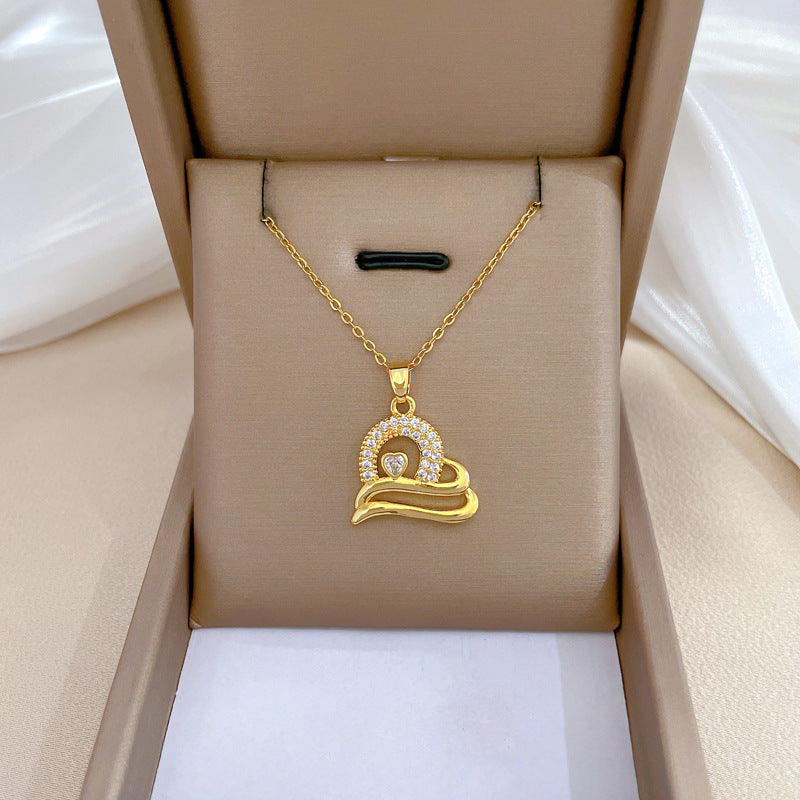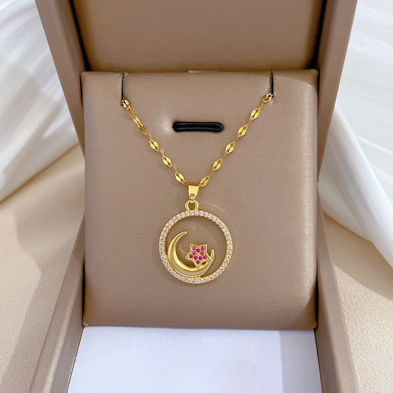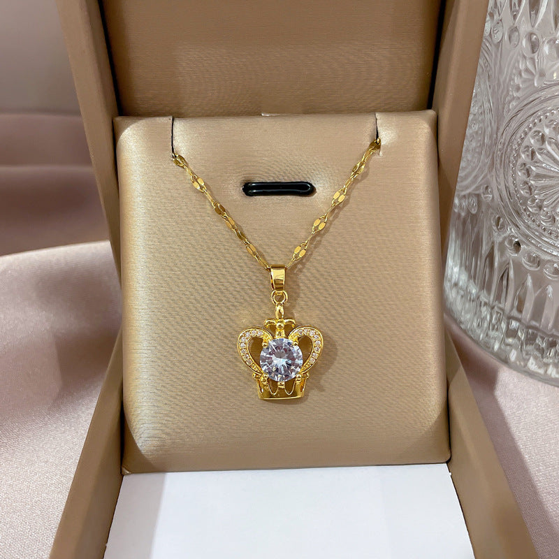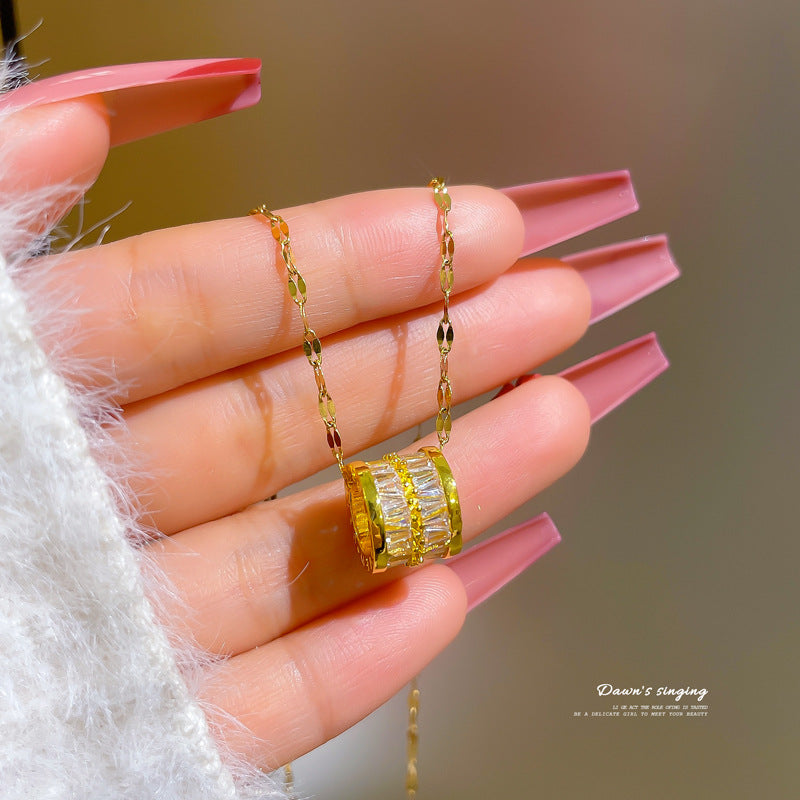 Minimalist Geometric Titanium Steel Diamond Inlay Necklaces