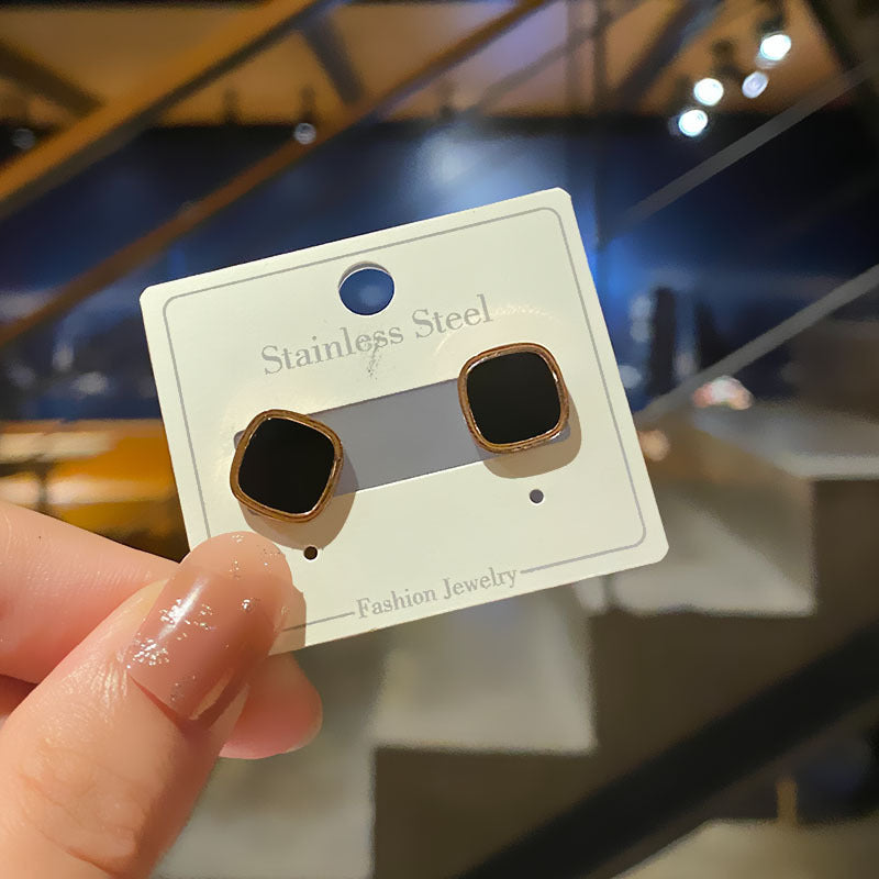 Minimalist Quadrilateral Geometric Titanium Steel 18K Gold Plated Stud Earrings
