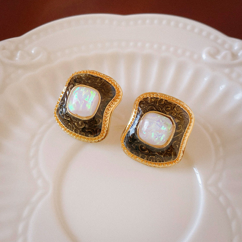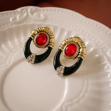 2 Pieces Minimalist Round Ellipse Geometric Copper Electroplating Earrings