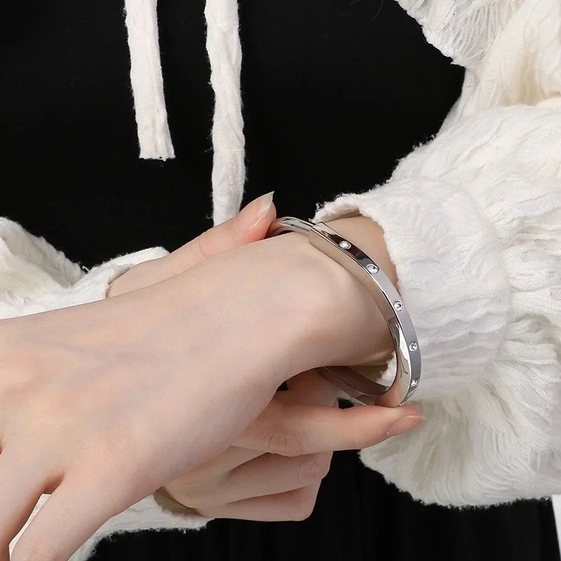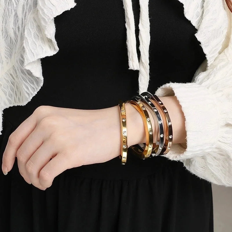 5 Pieces Minimalist Solid Color 304 Stainless Steel 18K Gold Plated Bangle In Bulk
