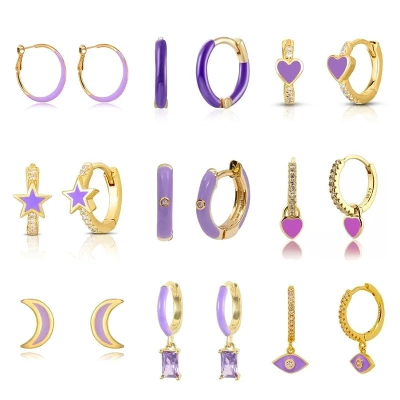 Minimalist Star Heart Shape Eye Copper Drop Earrings Epoxy Gold Plated Zircon Copper Earrings