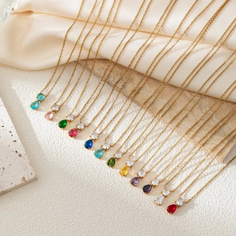 Minimalist Water Droplets 201 Stainless Steel 304 Stainless Steel Zircon 18K Gold Plated Inlay Pendant Necklace